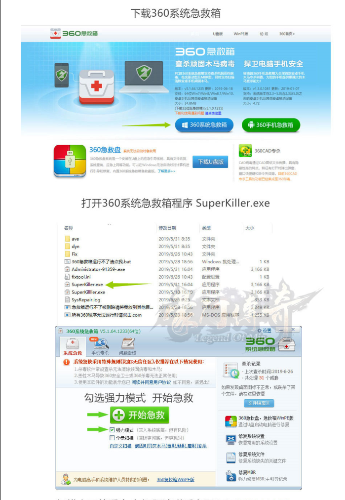 解决步骤:请到360官网下载360系统救急箱