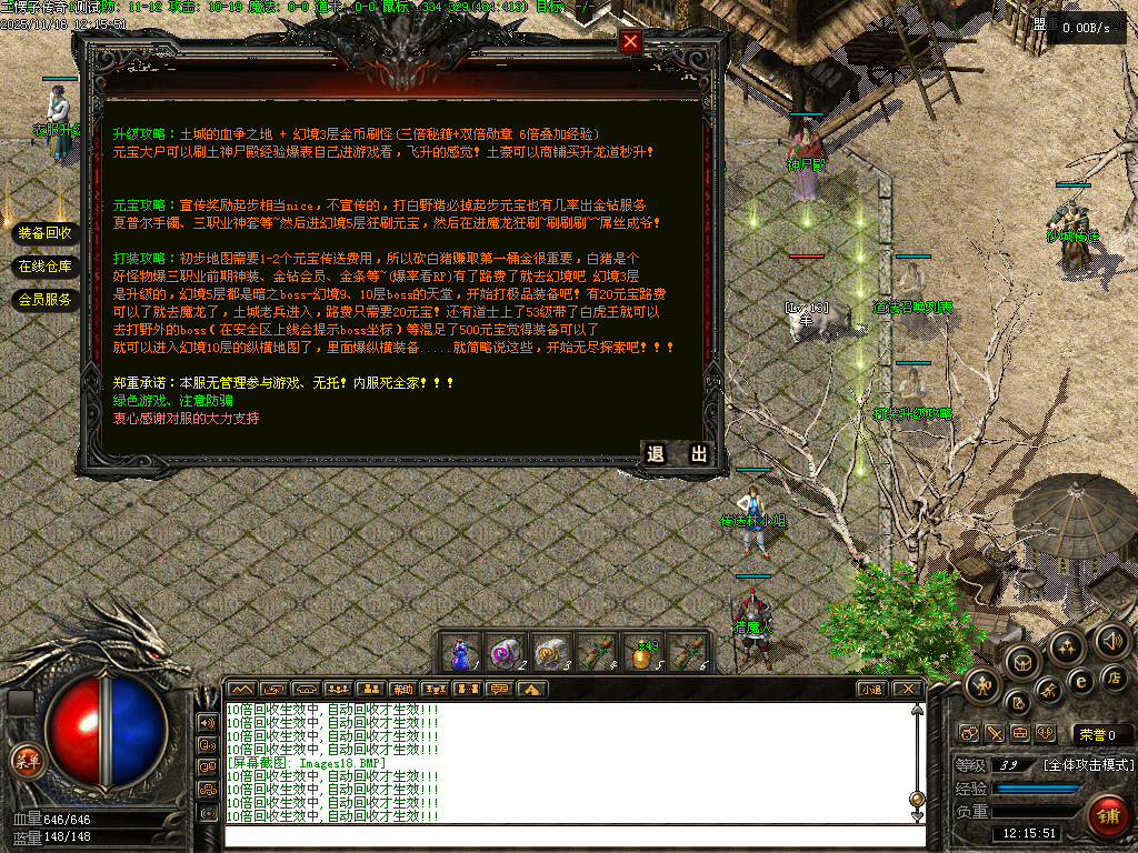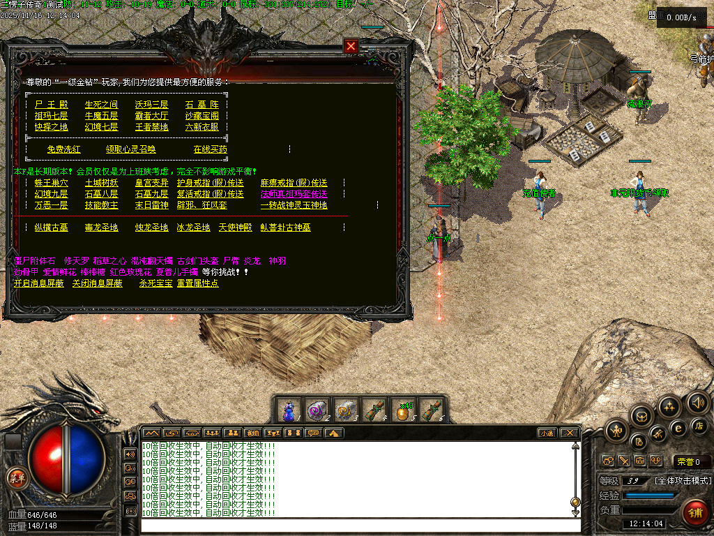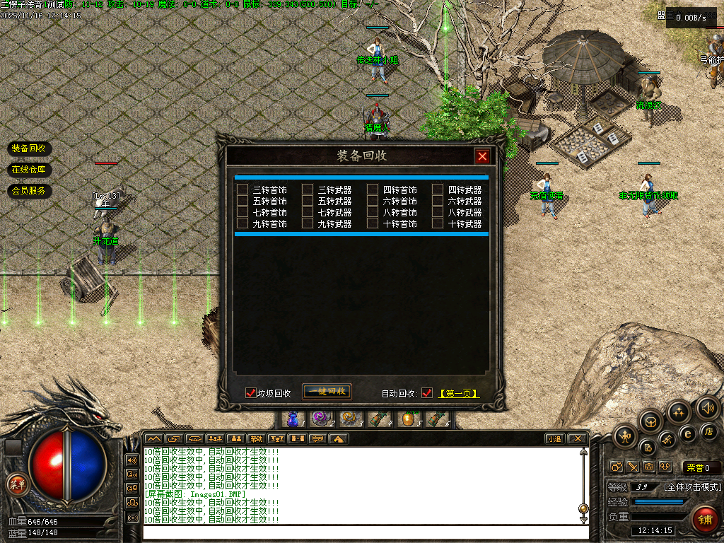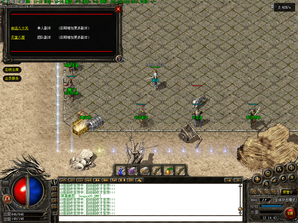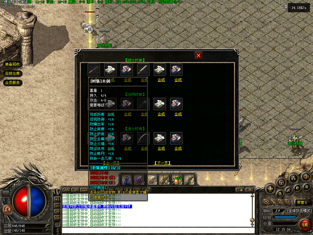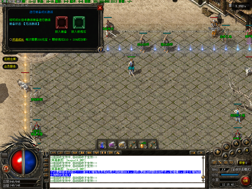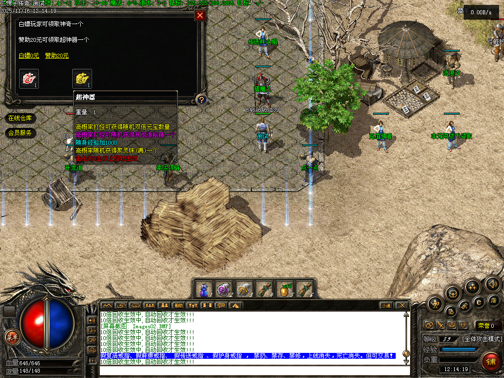 【二愣子传奇】三职业,可转职,4大陆,非无限货币,全屏拾取,自动回收,充值玩家额外增加10倍爆率,10倍经验,10倍回收