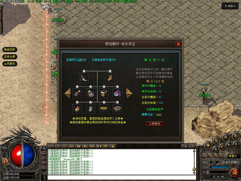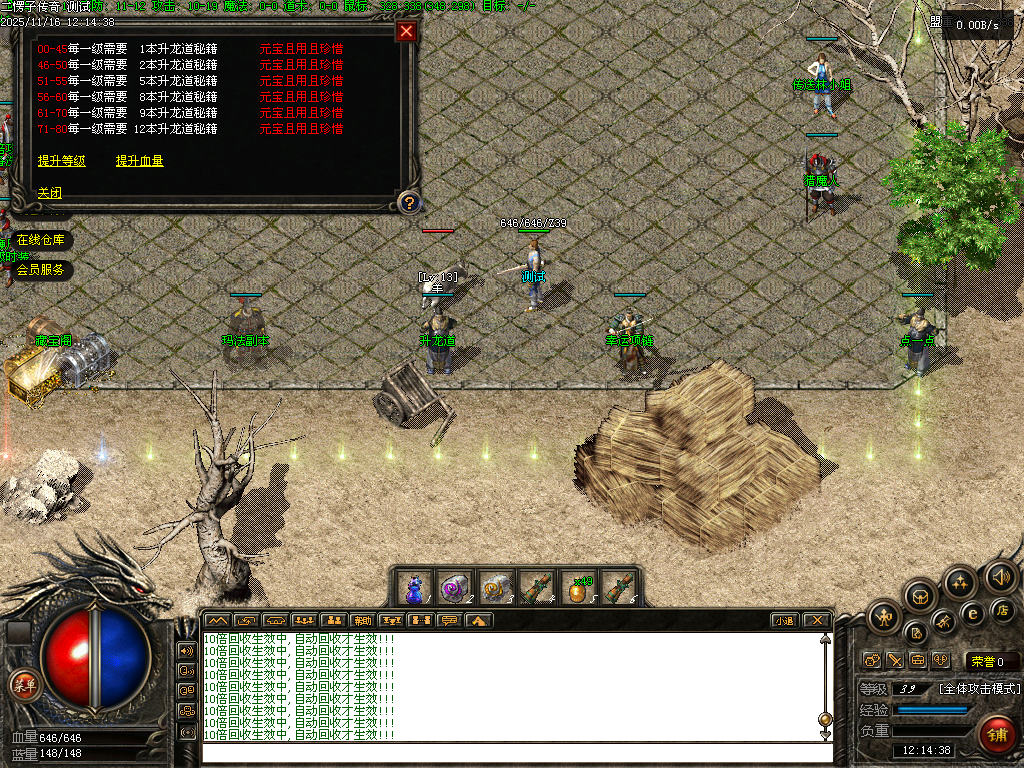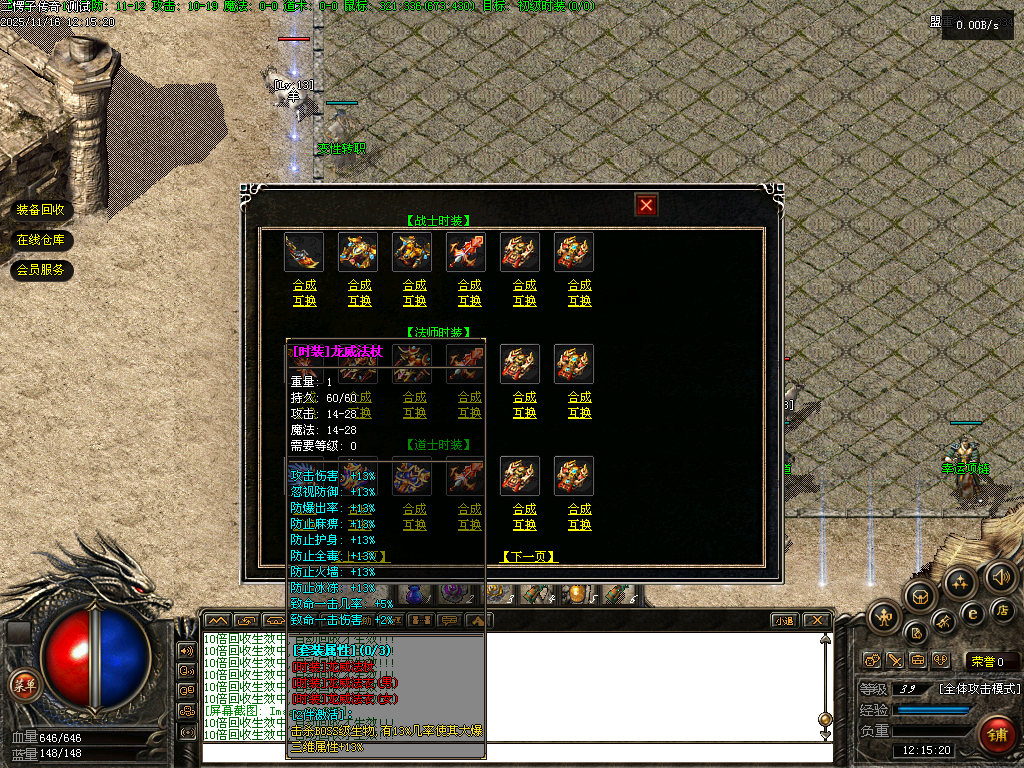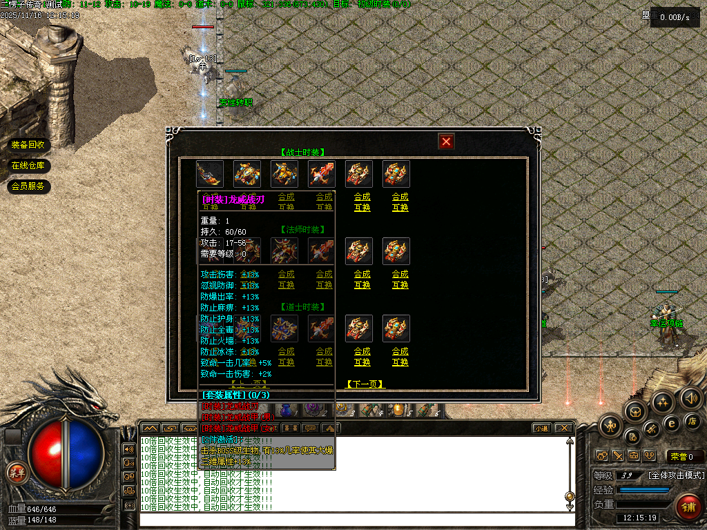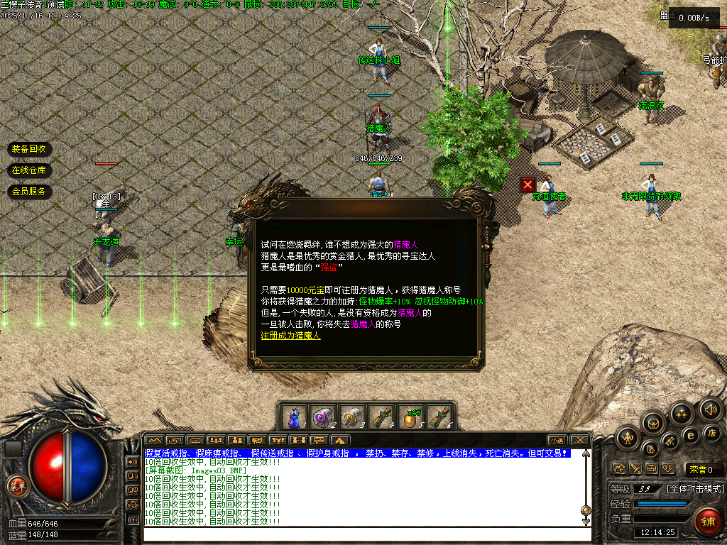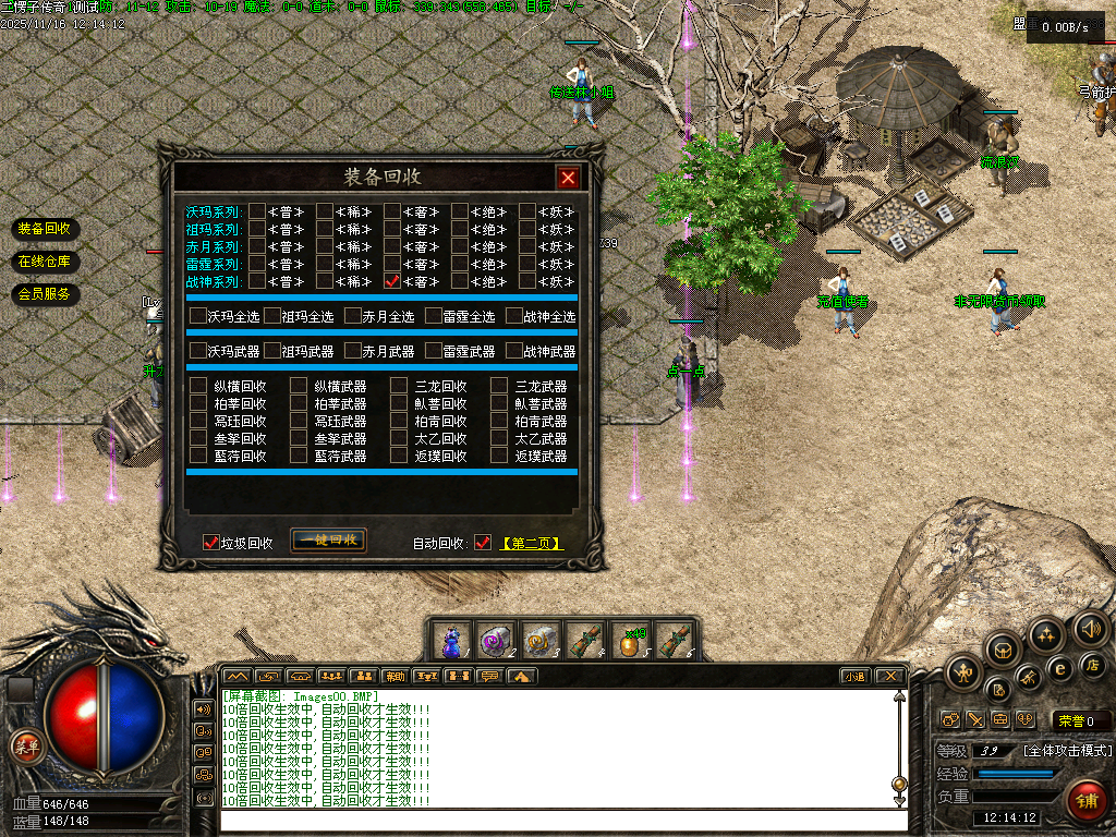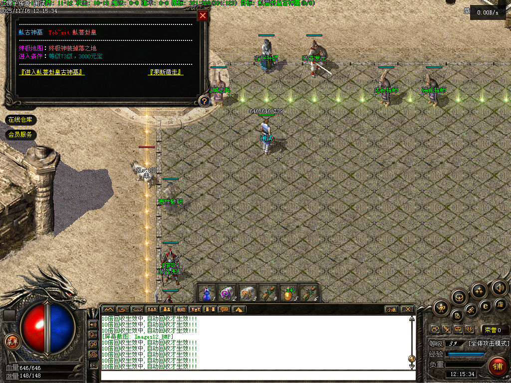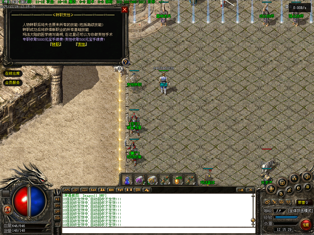 【二愣子传奇】三职业,可转职,4大陆,非无限货币,全屏拾取,自动回收,充值玩家额外增加10倍爆率,10倍经验,10倍回收