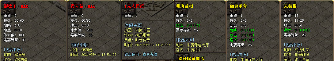 :极品+5+6有小倍攻加成,无任何收费合成收费等级收费地图,全靠爆全靠打,装备元宝回收比例高
